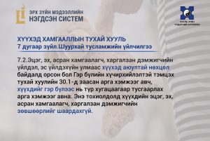 🔰ХҮҮХЭД ХАМГААЛЛЫН ТУХАЙ ХУУЛЬ 7 дугаар зүйл.Шуурхай тусламжийн үйлчилгээ